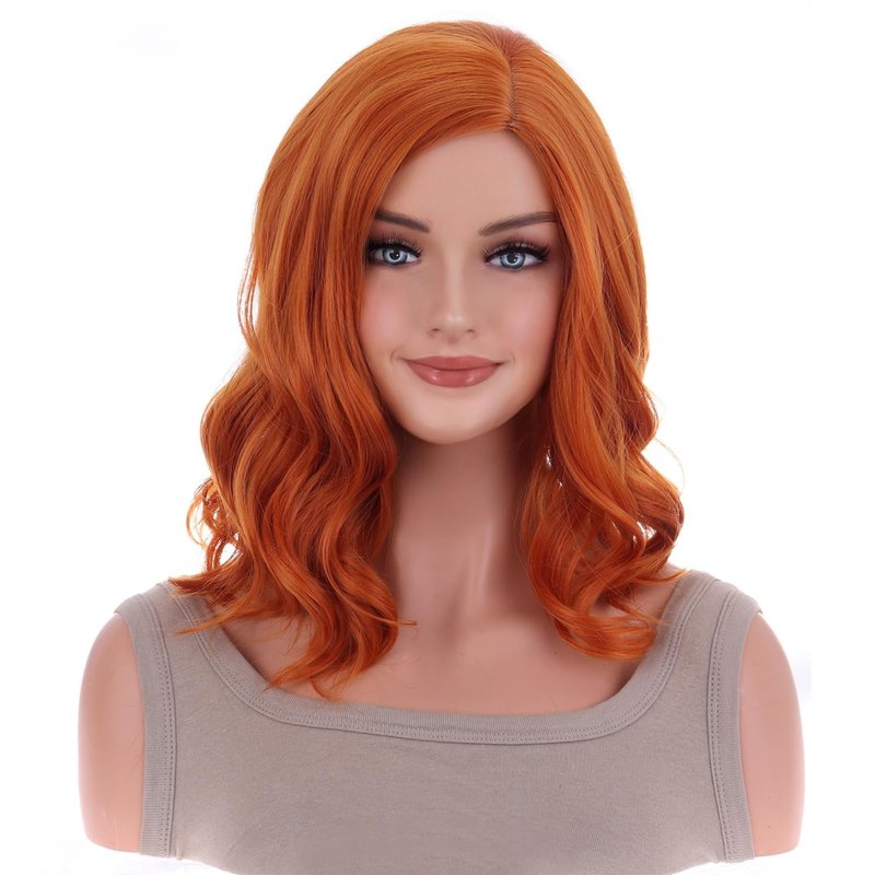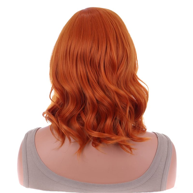 incohair Dark Orange Wig Side Part Short Curly Bob Wig Orange Synthetic for Cosplay Halloween Party or Daily Use