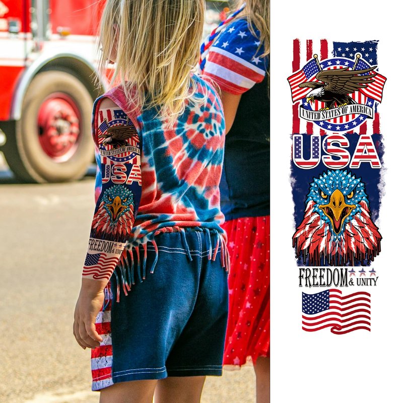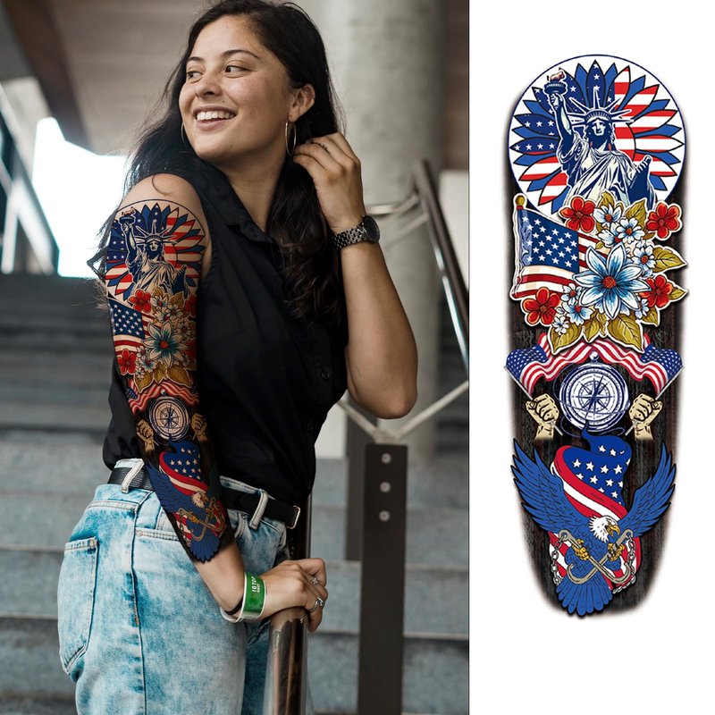 Independence Day Temporary Tattoo, 4th of July Sleeve Tattoo American Flag Fake Tattoos USA Flag, Memorial Day Full arm temporary tattoos, Red White and Blue Party Supplies