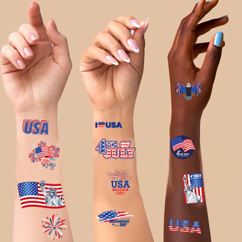 - Show your patriotism: Celebrate Independence Day in style with our Independence Day Temporary Tattoo collection. These tattoos feature American flags, Eagles, and other patriotic designs that will let you proudly display your love for your country.