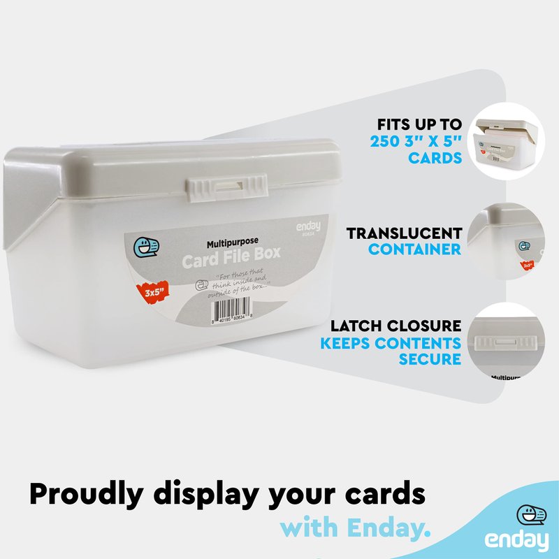 Index Card Holder Grey, 3x5 Note Flash Card Organizer Case, Stackable Index Card File with flip top, Notecard Recipe Purple, Red, Green, Blue, Grey, Pink Holder, Holds 250 Cards – By Enday