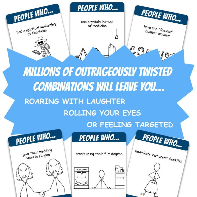 - With a whopping 275 cards, this board game is perfect for families, parties, and groups looking for a popular and hilarious activity. Brace yourself for millions of outrageously twisted combinations that will leave you roaring with laughter, rolling your eyes, or feeling personally targeted! And guess what? We've even thrown in blank cards so you can unleash your own wild and absurd caricatures during the game.