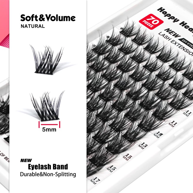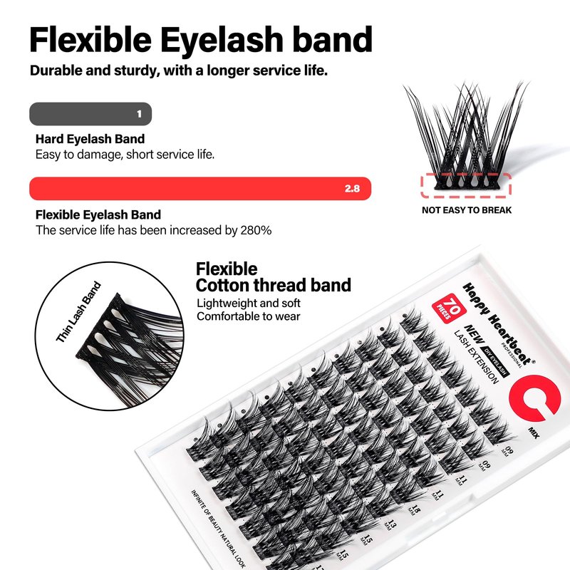Happy Heartbeat Individual Eyelash Extension Flexible Band Lash Clusters C D Curl Volume Reusable DIY False Eyelashes
