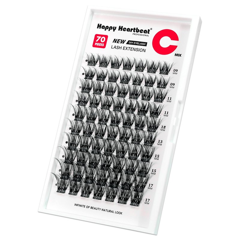 Individual Lash Clusters Natural Flexible Band Eyelash Extension C Curl Faux Mink Thick Volume Cluster lashes Mixed Length Reusable DIY False Eyelashes Happy Heartbeat(Black A13-C)