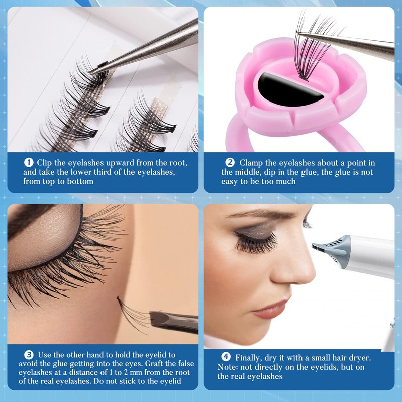 - 💖【How to use eyelash extensions cluster】Eyelash extension cluster is waterproof, non-irritating, please use eyelash tweezers to hold the root of the individual lashes and lift it up gently but not for the middle or more, which will not harm the original eyelashes