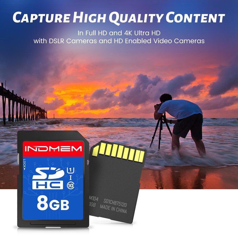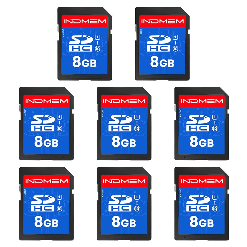 INDMEM SD Card 8GB, 8 Packs Class 10 8GB Flash Memory Card MLC Standard Secure Digital Cards Camera Card