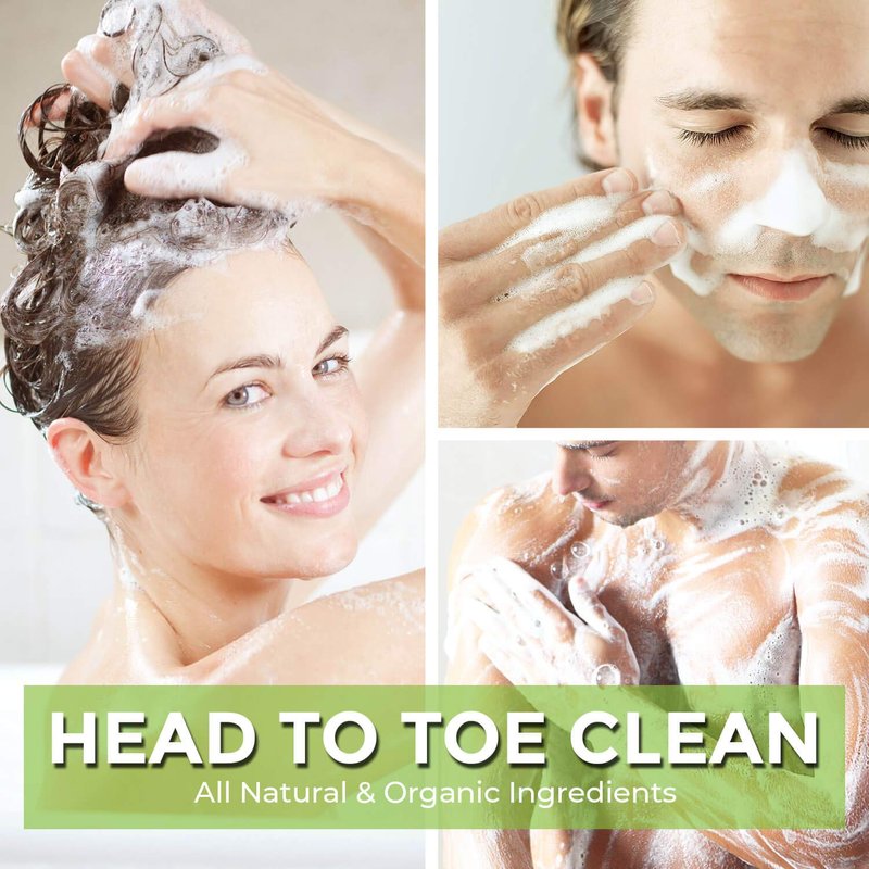 Head to toe CLEAN! Shampoo, conditioner, body wash and face wash. The perfect all-in-one solution for men & women who want to spend less time in the washroom or take clean on the go.