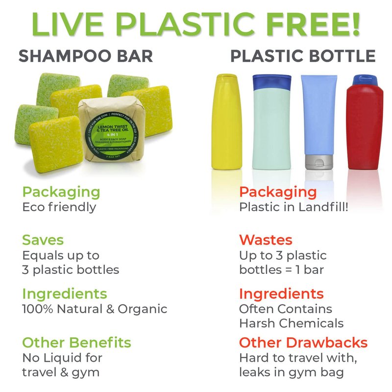 - PLASTIC FREE & ZERO WASTE: Are you trying to live a plastic free life?? This 2 bar shampoo and conditioner set are made with the planet in mind. 100% plastic free packaging. There is no plastic wrapping and no shampoo bottles. This will save up to 3 plastic shampoo bottles & 3 plastic conditioner bottles per bar!