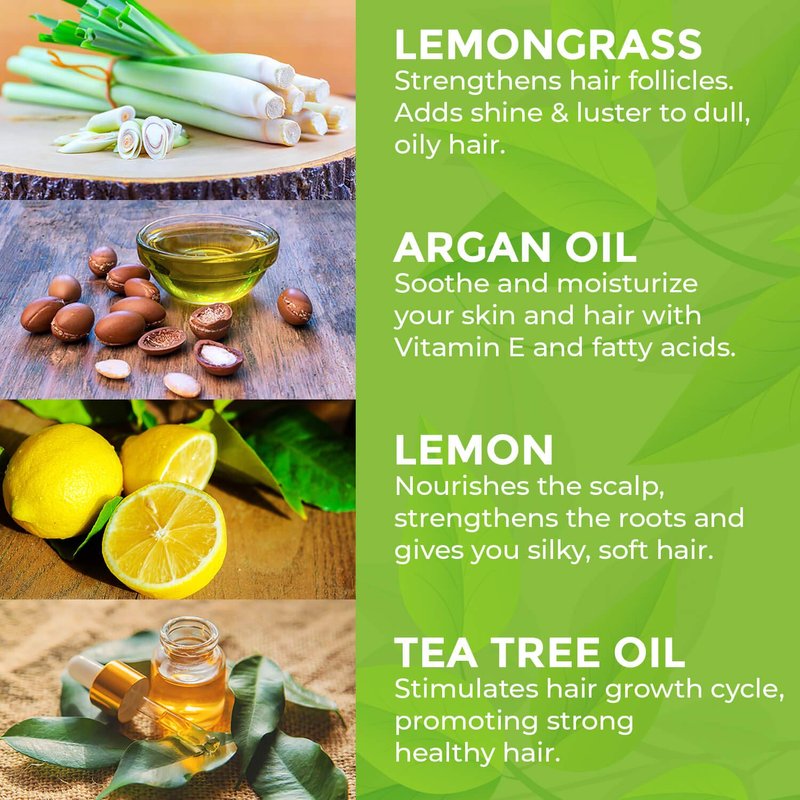 - ARGAN OIL AND TEA TREE BAR SET: Tea tree improves blood flow and allows nutrients to reach hair follicles and stimulates the hair growth cycle to give you a head full of strong healthy hair. Argon oil contains vitamin E and fatty acids that will revitalize hair that has dried out from overuse of harsh hair treatments. Lemongrass will strengthen the hair follicles, great for combating hair loss. It will add shine and luster to dull, oily hair. Enjoy it’s sweet, citrus aroma.
