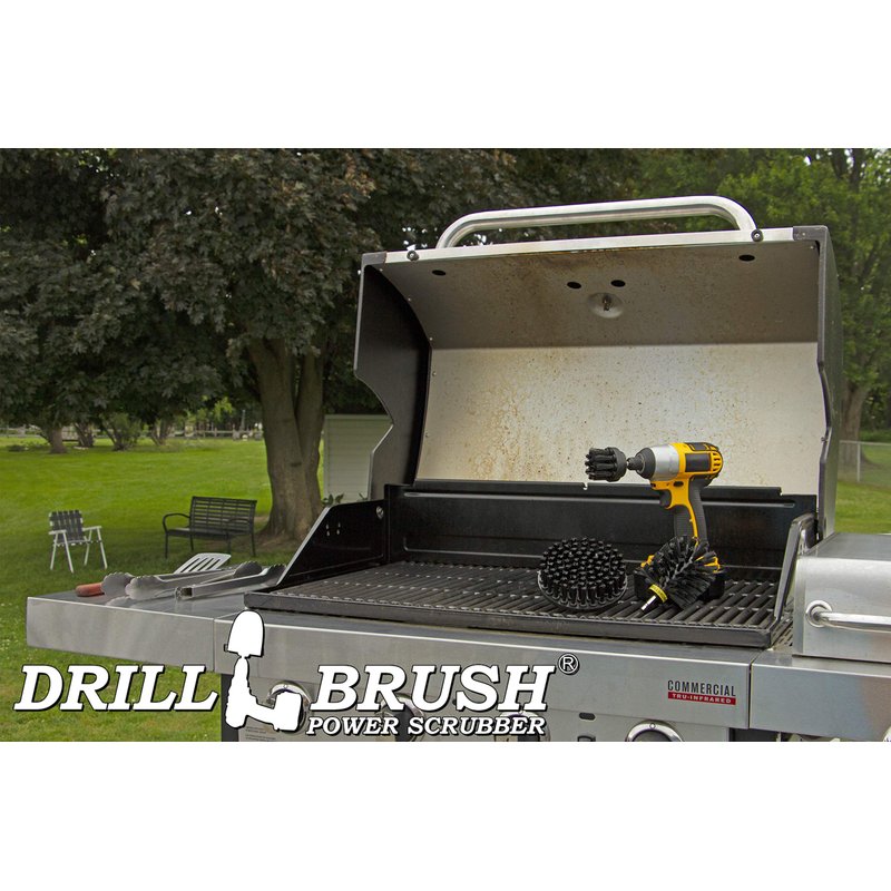 Introducing our industrial-grade black ultra-stiff drill-powered scrubber brush Set, the ultimate companion to your existing cleaning supplies for your heavy-duty cleaning needs. Tired of scrubbing and cleaning tirelessly? Say goodbye to hard work with this powerful electric scrubber that does all the tough work for you. These household cleaning brushes are specifically engineered for surfaces like concrete, brick, stainless steel, and metal. Whether you're removing stubborn dirt, grime, rust, or even graffiti, our sleek black brushes provide maximum scrubbing power. This spin scrubber is not only great for household cleaning, but also for outdoor use, such as grill cleaning kit, graffiti remover, pellet smoker accessories, concrete scrubber, oil stain remover, and more. Using your cordless drill and these power scrubbers for cleaning you create a versatile tool that will become an essential part of your household supplies of cleaning products. This power drill brush kit is great for cleaning Barbecue Grills. This kit includes (3) brushes that all feature quarter inch quick change shafts for use with your own cordless drills. Nylon bristles are safe to ingest unlike competitors metal brushes. Stainless steel wire brushes can break off and get inside your food. Our nylon brush will clean more effectively as it uses all the power of your cordless drill without the risk of contaminating your food with sharp metal wire. These brushes will not rust like metal bristle brushes. Do not use on warm surfaces, only cool surfaces. Cordless drill is NOT included. Don't miss out on this drill scrubber brush kit that will revolutionize the way you clean! Get yours today and enjoy a pristine living space with minimal effort.