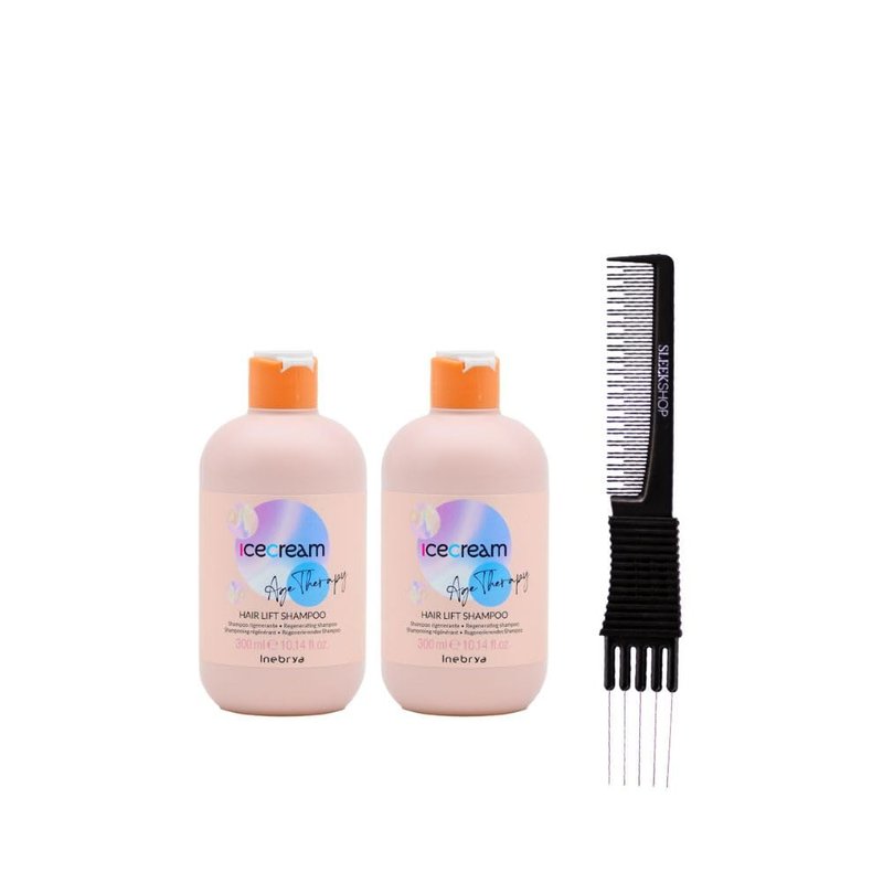 Inebrya Ice Cream Age-Therapy with Collagen Hair Lift Shampoo (10.14 oz) with Teasing Comb Pack of 2