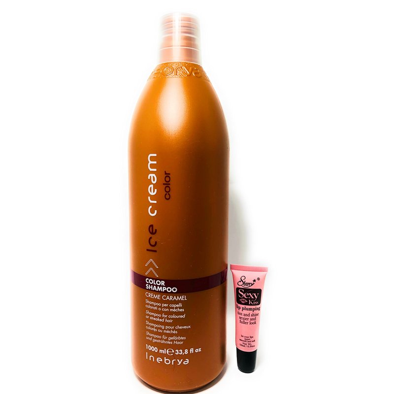 Inebrya Ice Cream Color Shampoo Creme Caramel 33.8 Oz and Ice Cream Color Mask Tutti Frutti 33.8 Oz * Free Starry Lip Plumping Gloss 10ml