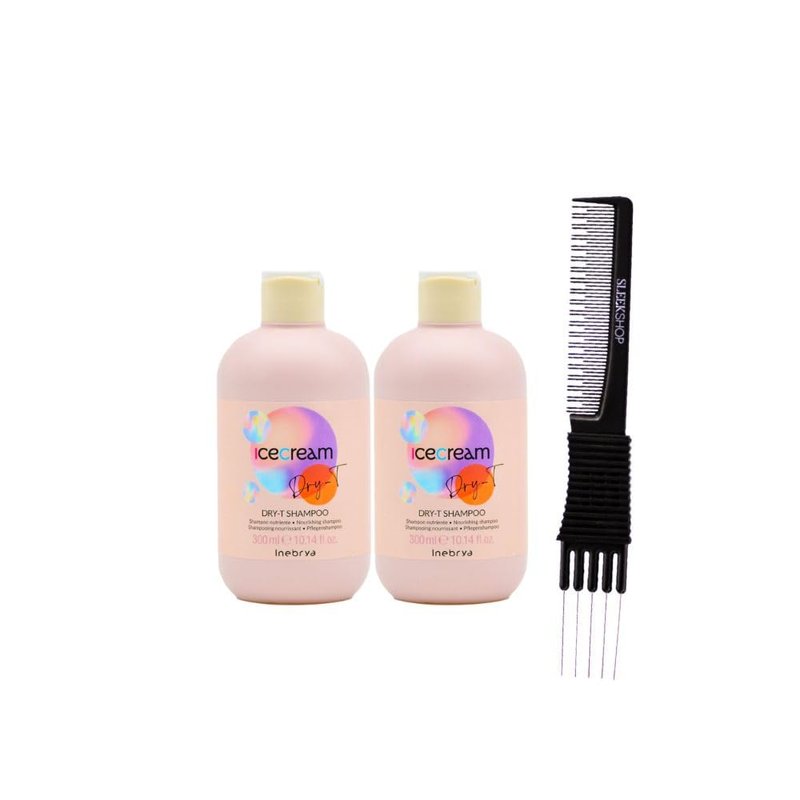 Inebrya Ice Cream Dry-T Shampoo (10.1 oz) with Teasing Comb Pack of 2