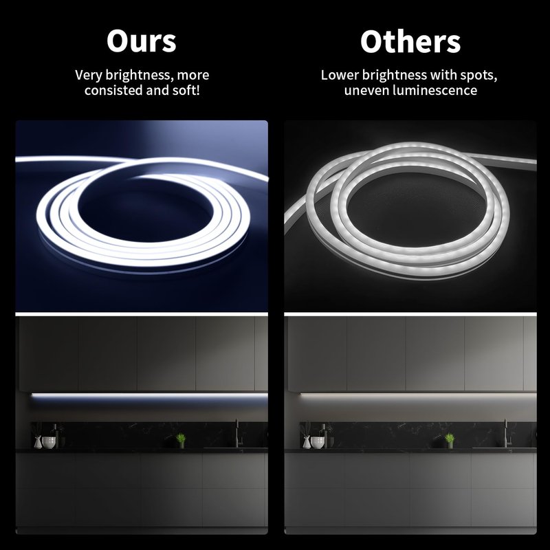 - Soft Light: The thick and flexible silicon jacket surrounding the LEDs diffuses the light for a soft, even illumination suitable for bedrooms, kitchens, and more.