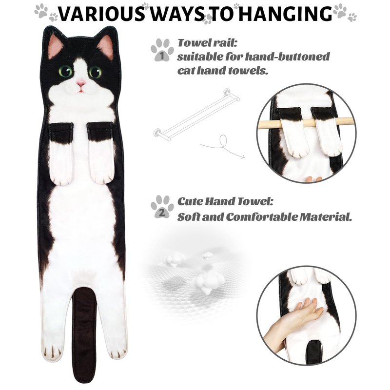 - 🎁【Cat Christmas Gift for Women】The cat hand towel is perfect for a family member/friend/colleague as a cat dad/cat mom/cat themed/housewarming for any gifts giving occasion. The tuxedo cat towel can also be used as a quirky and novelty gifts to surprise cat lovers at birthdays, Valentine's Day, Mother's Day, Thanksgiving, Christmas and other holiday parties.
