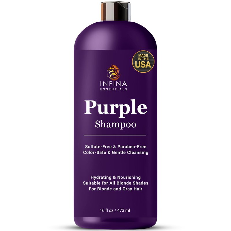 Experience the transformative power of INFINA ESSENTIALS Purple Shampoo for blonde hair, expertly formulated to enhance the natural beauty of blonde, gray, bleached and silver hair. Our shampoo not only combats unwanted brassy tones but also nourishes and revitalizes your hair, ensuring it remains vibrant and healthy. Enriched with nourishing extracts and advanced proteins, this shampoo is your go-to solution for maintaining your ideal hair color between salon visits.