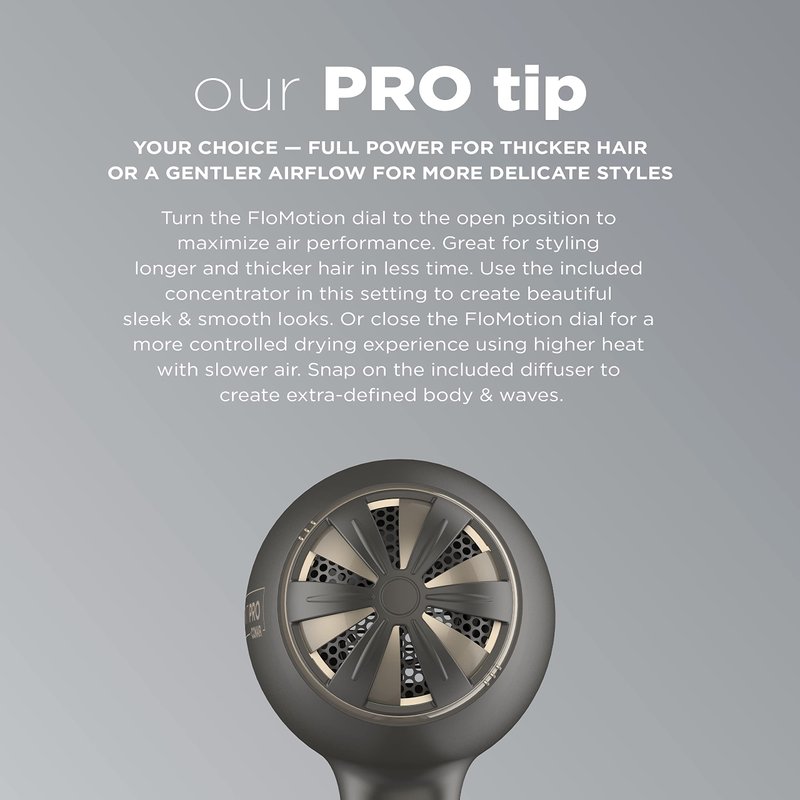 INFINITIPRO BY CONAIR FloMotion Pro Hair Dryer | Personalize Your Drying Experience with Adjustable Airflow | Includes Diffuser and Concentrator