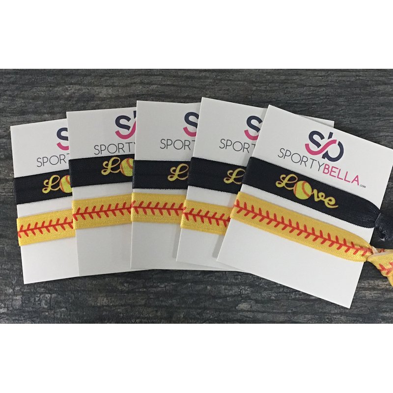 - SOFTBALL JEWELRY- Adorable softball hair ties with "Love Softball" and Softball Stitch Print