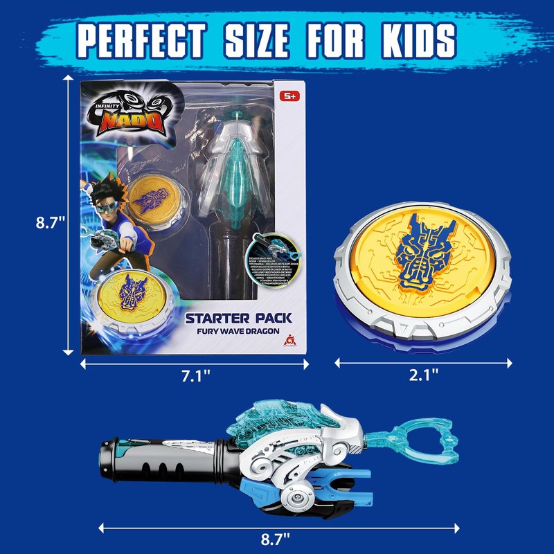 INFINITY NADO Bey Battling Blade Toys, Metal Brust Gyro Toys for Boys and Girls Age 5+, Battle Set with Spinning Top & String Launcher, Spinning Tops Boy Toys Kids Gifts, Fury Wave Dragon