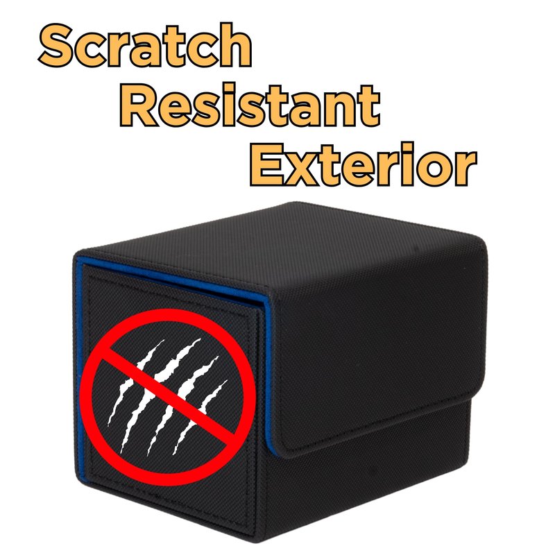 - Durable Construction: Each of these deck boxes has been made with a durable scratch resistant exterior material. One box a deep blue interior, and the other box has a dark black interior, made of soft microfiber material which will protect your cards.