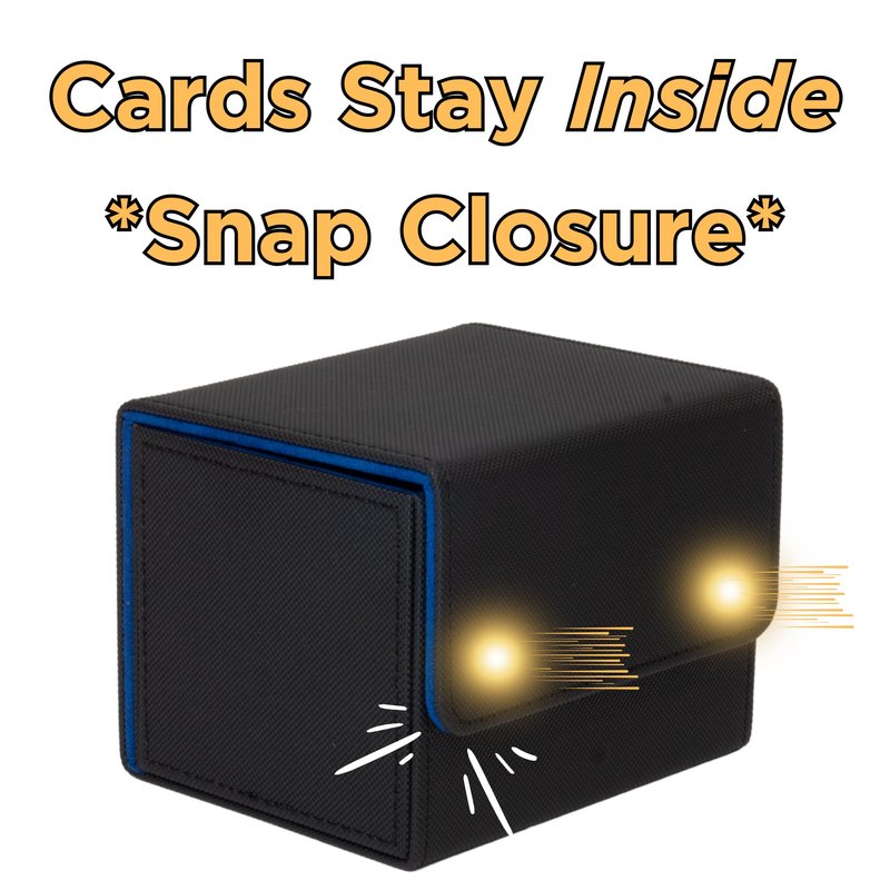 This card deck box protects 100 double sleeved cards. It snaps shut tight because we put strong magnets in for the "snap closure" effect. This box has intentionally more space than most toploading boxes, so it can actually fit your entire 100 card deck, even if you double sleeve it.