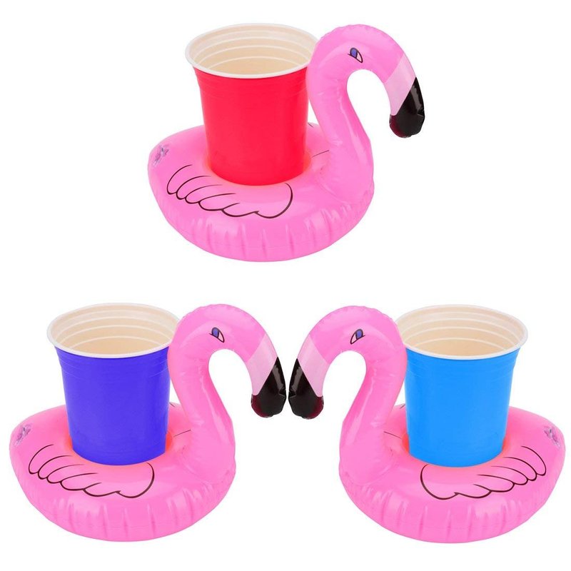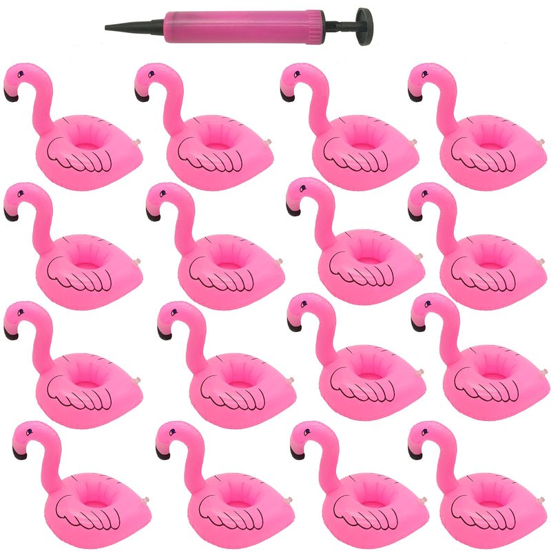 Inflatable Drink Holder, 16 Packs Flamingos Floats Inflatable Cup Floating Coasters for Summer Swimming Pool Party and Kids Fun Bath Toys (16 Packs)