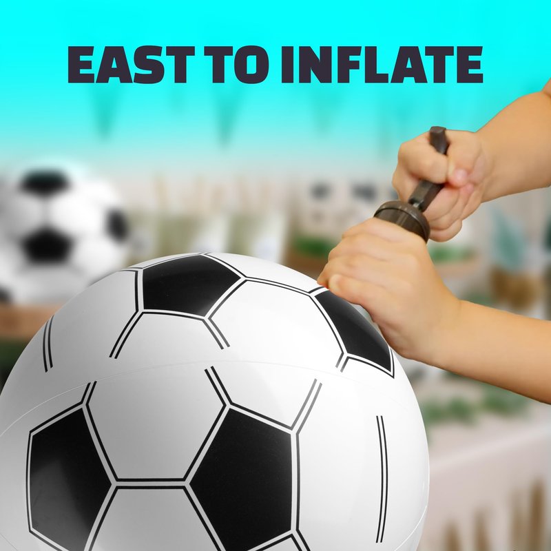 - 16 INCH - EASY TO INFLATE BEACH BALLS: These inflatable Soccer Balls feature a standard-size valve that is easy to inflate and deflate quickly without much effort. You can inflate them with just a few breaths or by using a hand pump. Each beach ball will hold air and stay inflated for hours of fun