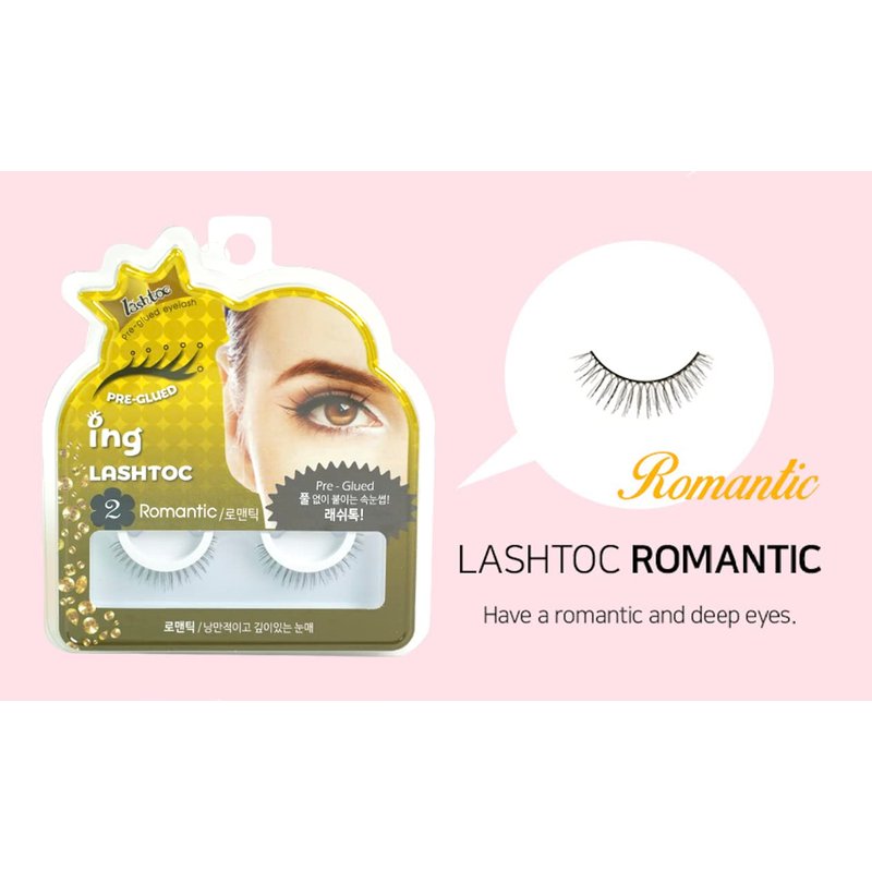 Ing Lashtoc, Romantic Style: Pre-Glued Natural Look Eyelashes, Long-Lasting Reusable Lightweight False Eyelashes, Made in Korea (3 pair pack, Romantic)