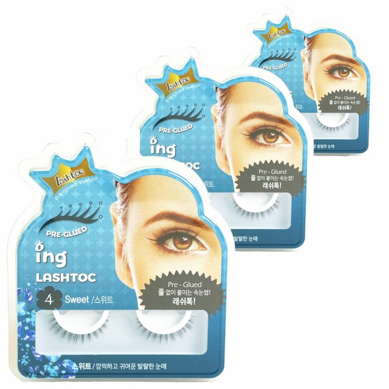 Ing Lashtoc, Sweet Style: Pre-Glued Natural Look Eyelashes, Long-Lasting Reusable Lightweight False Eyelashes, Made in Korea (3 pair pack, Sweet)