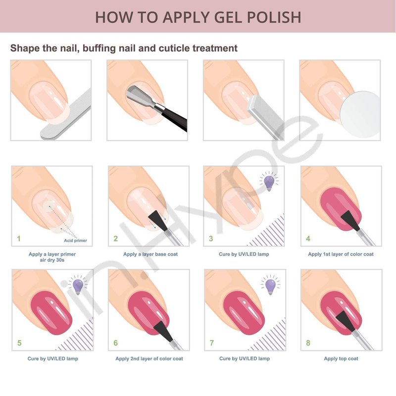 - PLEASE NOTE: Has to be cure in UV/LED lamp for 30-60 sec. Depending on the type of lamp the curing time varies. We recommend to use UV/LED lamp at least 48watt. After the gel is cured it still has a sticky inhibition layer. Just apply a gel top coat to finish the application.