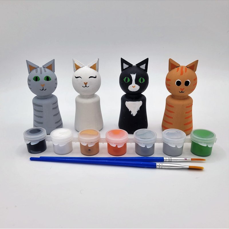 Ink and Trinket Kids DIY Cat Peg Doll Painting Kit, Craft Kit Includes 4 Peg Doll Animals with 6 Unique Cat Designs to Choose From, Gift for Cat Lovers, Boys, and Girls
