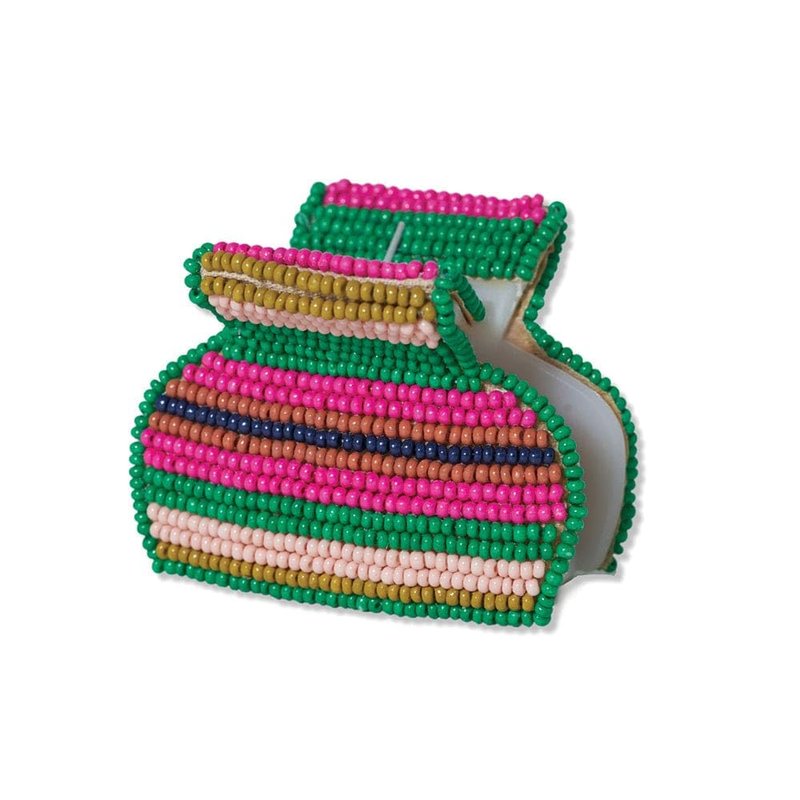 INK+ALLOY Small Beaded Claw Clips, Gia Boho Hair Clips for Women, Mini Claw Clip for Half Up Half Down Hair Styles, Handmade Hair Accessories for the Modern Bohemian (Rio)