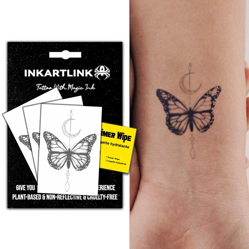 INKARTLINK Semi Permanent Tattoos, 3 Sheets of Small Temporary Tattoos, Adult Art Designs, Party Favors, Waterproof, Realistic, No Adhesive, No Reflective, Lasts 1-2 Weeks (Butterfly)