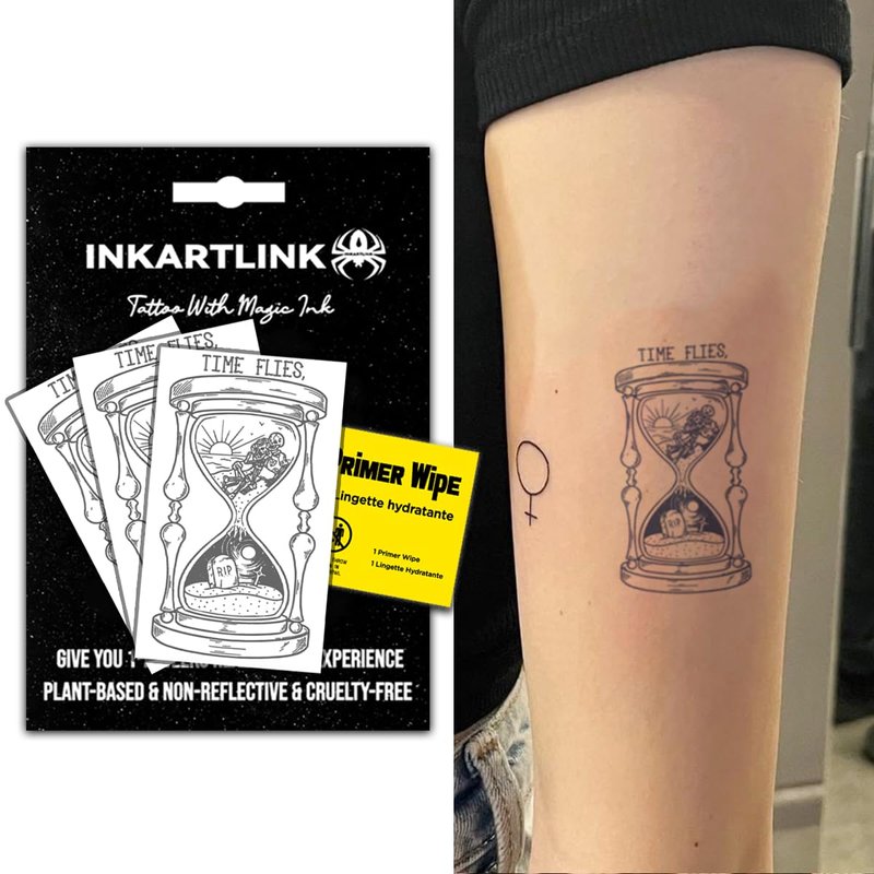INKARTLINK Semi Permanent Tattoos, 3 Sheets of Small Temporary Tattoos, Adult Art Designs, Party Favors, Waterproof, Realistic, No Adhesive, No Reflective, Lasts 1-2 Weeks (Time Hourglass)