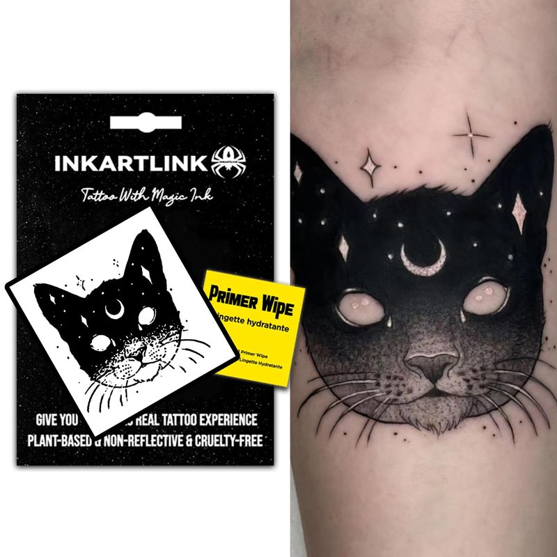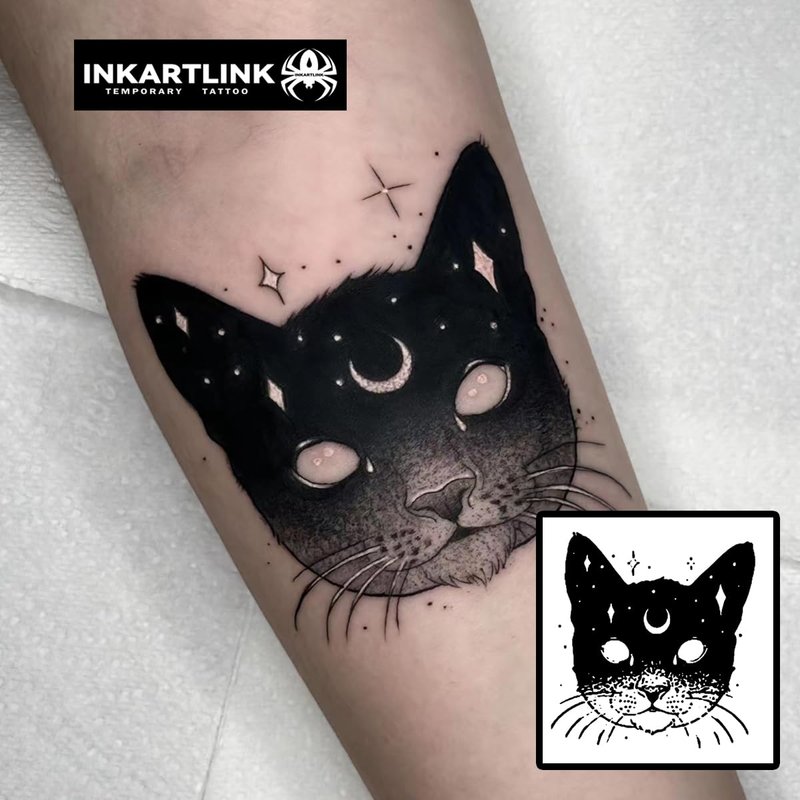 INKARTLINK Semi Permanent Tattoos, realistic cat tattoos, temporary tattoos, adult art designs, party favors, waterproof, no adhesive, no reflective, lasts 1-2 weeks (Star Moon Cat)