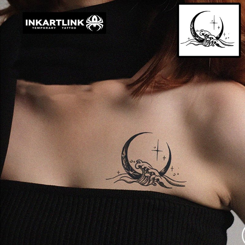 INKARTLINK Semi Permanent Tattoos, Temporary Tattoos for Girls, Party Tattoos, Waterproof, Natural and Realistic, Cruelty-free, Easy to Apply (Waves)