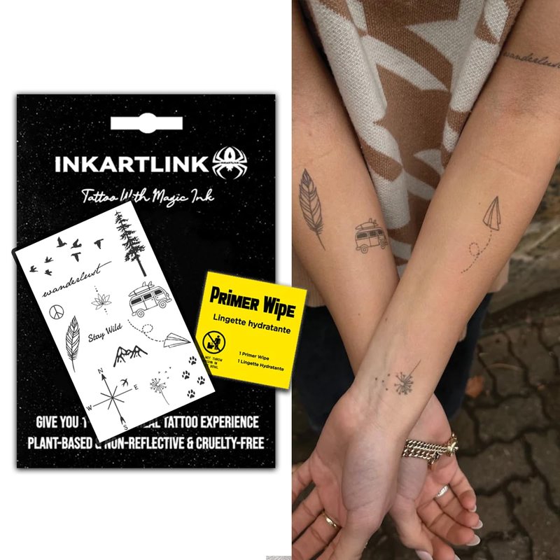 - Exquisite packaging We come with beautiful packaging and put a primer wipe in every piece of tattoo sticker. Therefore, INKARTLINK temporary tattoos are very suitable as small gifts for relatives and lovers around you, adding some surprises and fun to life, making daily life less boring; it can also fulfill the small regret that many people want to get tattoos but dare not try easily. , give them a "regret medicine"