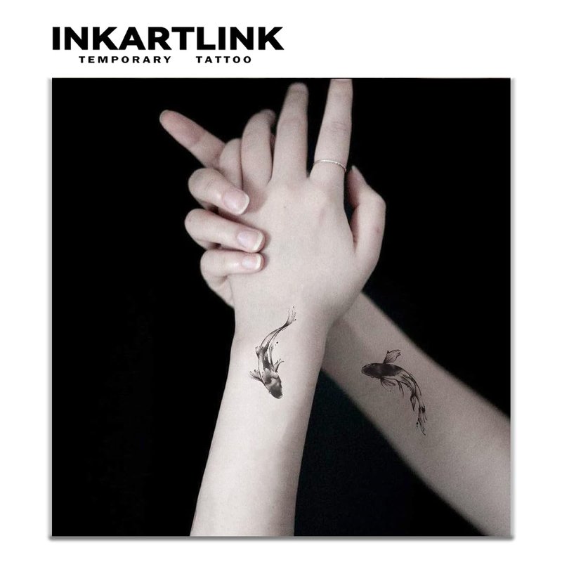 INKARTLINK Tattoo Tech, 3 Sheets Small Semi Permanent Tattoo, Adult Art Design Temporary Tattoos, Lasts 1-2 Weeks, Waterproof, Realistic Look, No Adhesive, No Reflection (Yin Yang Fish Design)