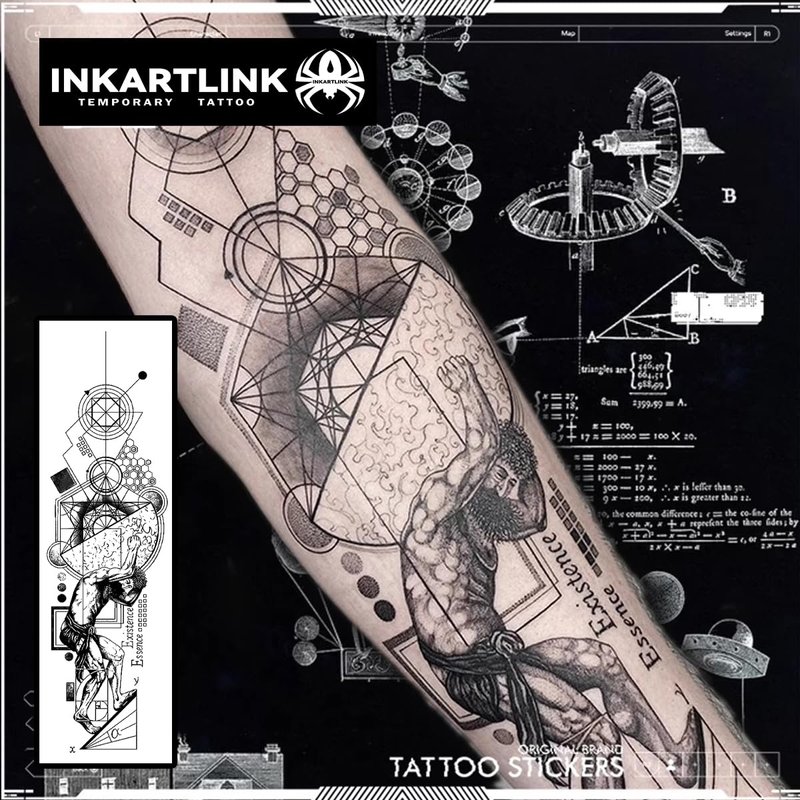 INKARTLINK Temporary Tattoos, Semi Permanent Tattoo Adult Art Design Waterproof Temp Tattoo Party Favors Tattoo Stickers Realistic Look, No Adhesive, Lasts 1-2 Weeks (Atlas)