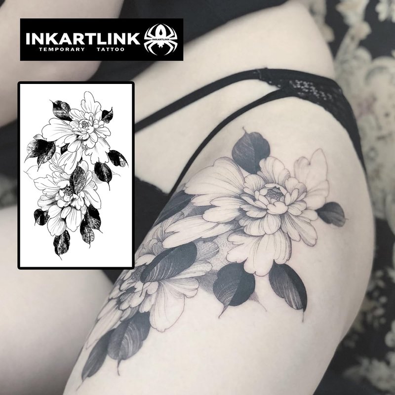INKARTLINK Temporary Tattoos, Semi Permanent Tattoo Adult Art Design Waterproof Temp Tattoo Party Favors Tattoo Stickers Realistic Look, No Adhesive, Lasts 1-2 Weeks Black (Art Flower)