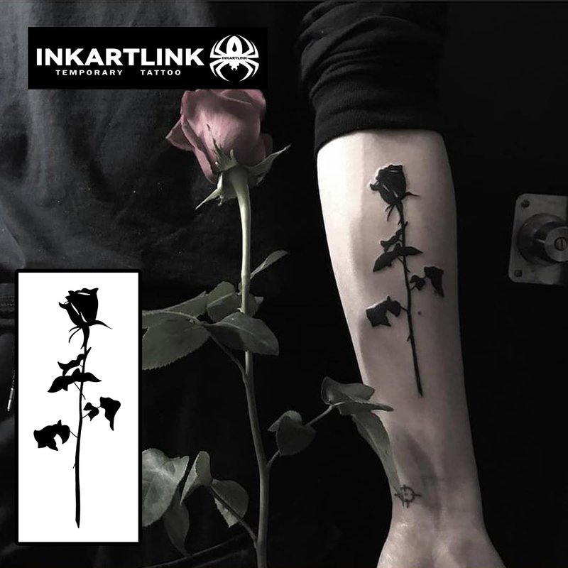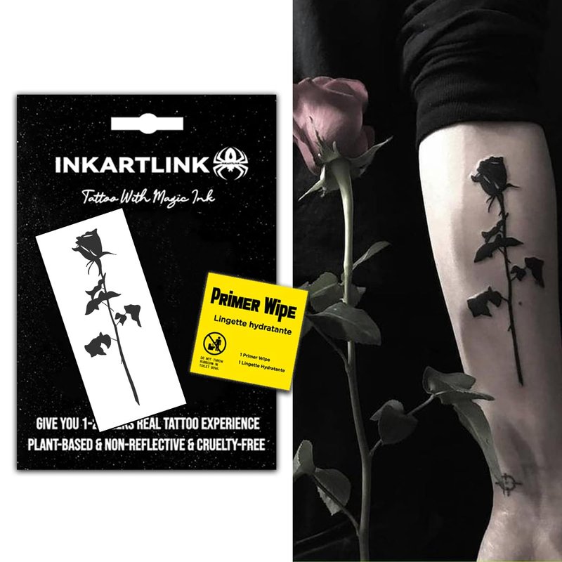 INKARTLINK Temporary Tattoos, Semi Permanent Tattoo Adult Art Design Waterproof Temp Tattoo Party Favors Tattoo Stickers Realistic Look, No Adhesive, Lasts 1-2 Weeks Black (Dark rose 2)