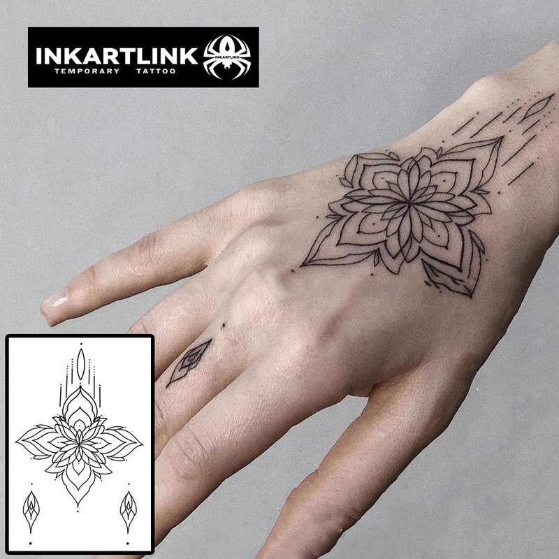 INKARTLINK Temporary Tattoos, Semi Permanent Tattoo Adult Art Design Waterproof Temp Tattoo Party Favors Tattoo Stickers Realistic Look, No Adhesive, Lasts 1-2 Weeks Black (Lotus 3)