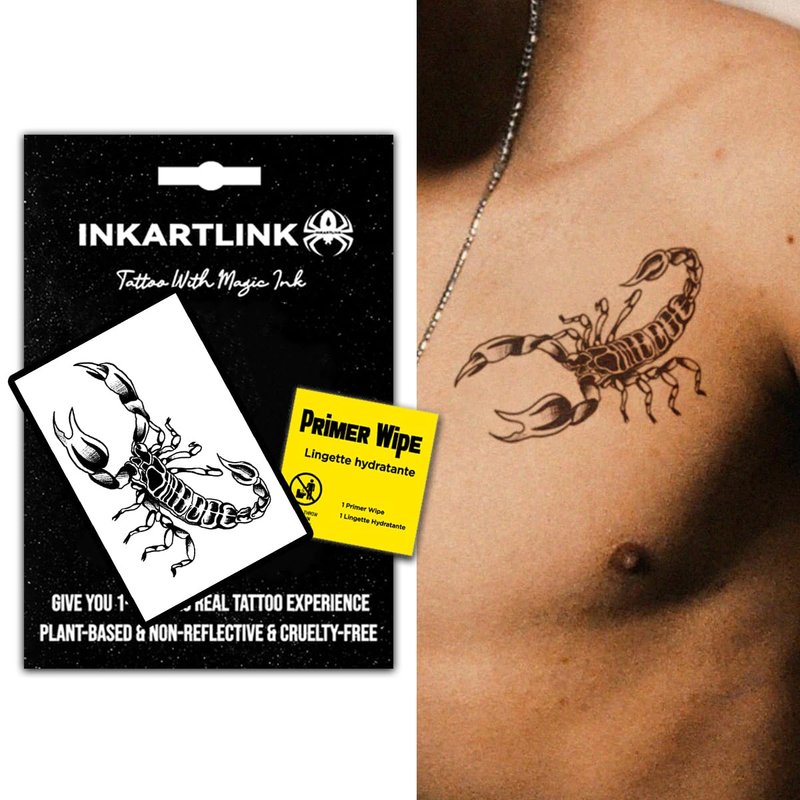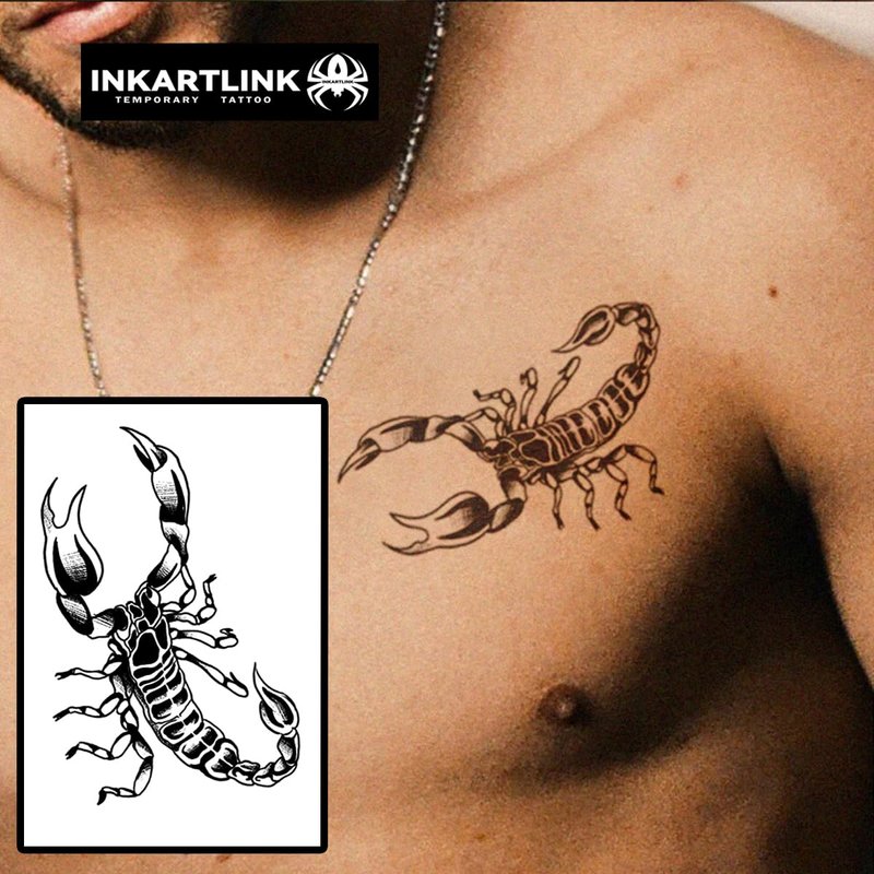 INKARTLINK Temporary Tattoos, Semi Permanent Tattoo Adult Art Design Waterproof Temp Tattoo Party Favors Tattoo Stickers Realistic Look, No Adhesive, Lasts 1-2 Weeks (Scorpion)