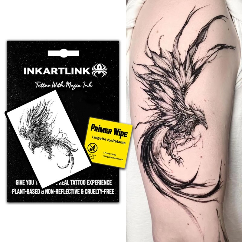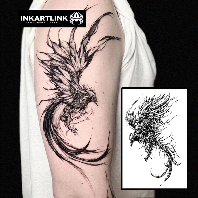 INKARTLINK Temporary Tattoos, Semi Permanent Tattoos Adult Art Designs Waterproof Temporary Tattoos Party Favors Tattoo Stickers Realistic, No Adhesive, Lasts 1-2 Weeks (Roc bird)