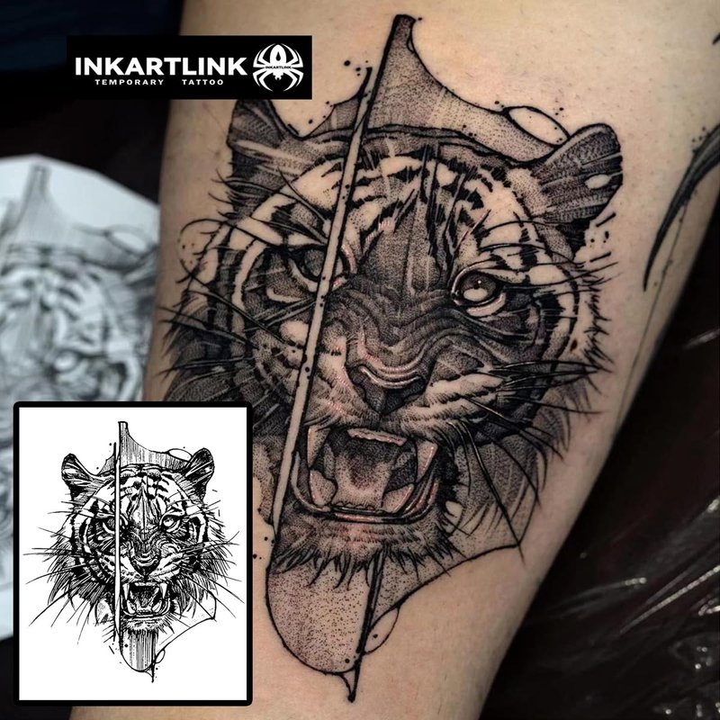 INKARTLINK Temporary Tattoos, Semi Permanent Tattoos, Adult Art Designs, Waterproof Temporary Tattoos, Party Favors, Tattoo Stickers Realistic, No Adhesive, Lasts 1-2 Weeks (Tiger head)