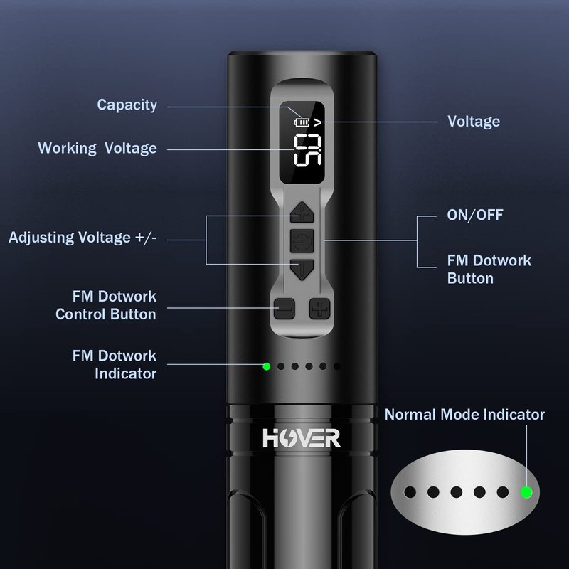 - 【FM DOTWORK MODE】:Wireles battery pen machine is Specifically designed to do shader tattoo and Micro Scalp Pigmentation. Under FM Dotwork mode ,the machine accurately and forcefully pushes the needle's active contraction to create tiny spots on the skin, each of which remains the same size. Compared with tradtional SMP machine,the tattoos made by Dotwork machine will be more clear, and skin lesions is small .