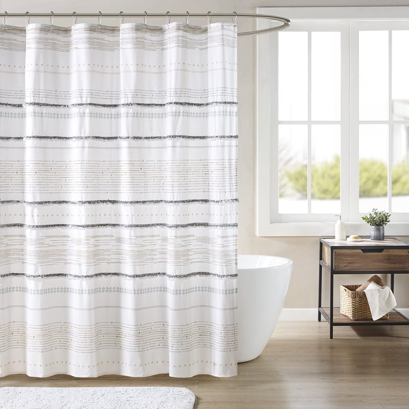 - The INK+IVY Nea Cotton Printed Shower Curtain with Trims offers a stunning contemporary update to your bathroom.