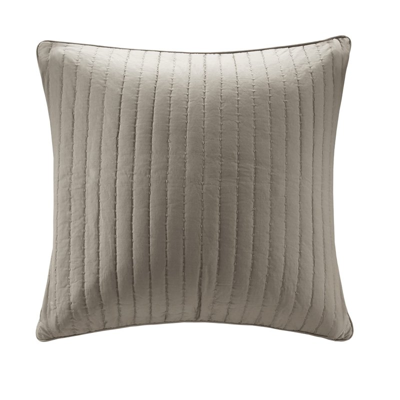 INK+IVY Single 100% Cotton Euro Sham - European Square Decorative Pillow Cover, Hidden Zipper Closure (Cushion NOT Included), Camila, Quilted Taupe 26"x26