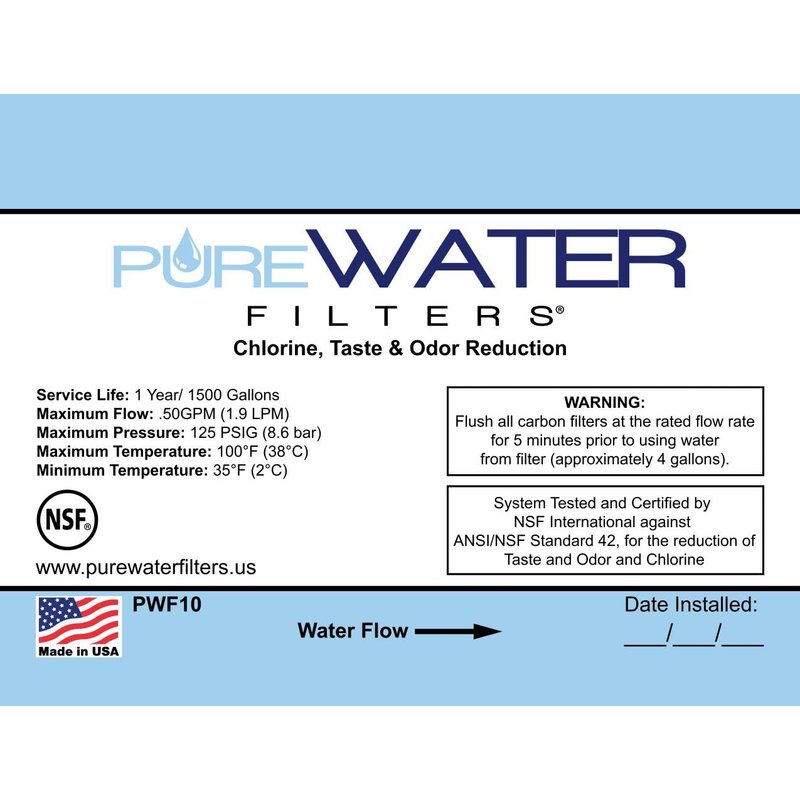 - Included PureWater filter cartridge lasts up to 1,500 gallons or one year, made in the USA, lifetime warranty on all filter kit parts (excluding the filter cartridge model PWF10)