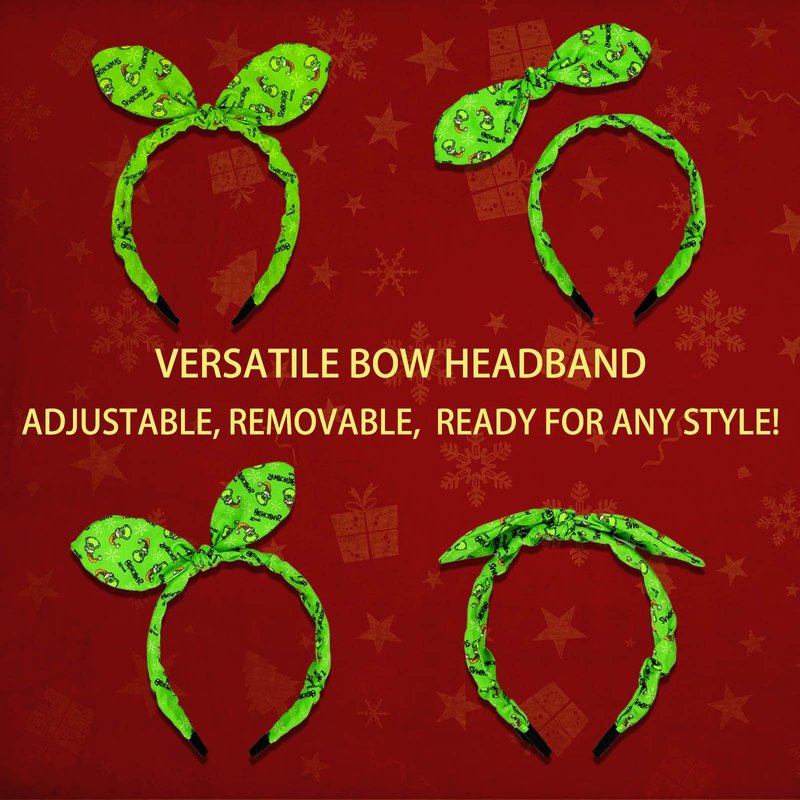 Add some festive fun to your holiday look with this christmas headband set! Featuring vibrant red and green bands, the headbands are adorned with playful designs inspired by a mischievous holiday character. The removable bow can be styled in multiple ways, from bunny ears to a flat, relaxed look, making it easy to create your perfect holiday style. Comfortable and adjustable, this christmas headbands for women is perfect for all ages and is sure to add a fun twist to your holiday wardrobe!