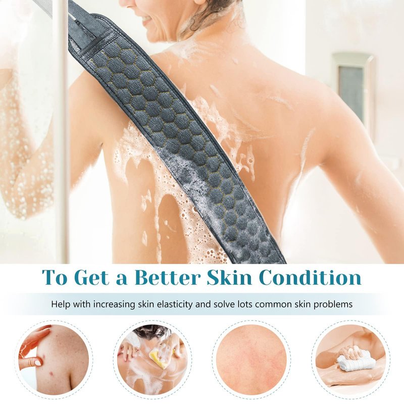 - 【Back Scrubber for Shower】: With 40 inches/100cm long, 3.9 inches/10cm width, our extra long body scrubber is designed to replace traditional washing towel and loofah,which can make bathing more effortless and more suitable for people with larger body.
